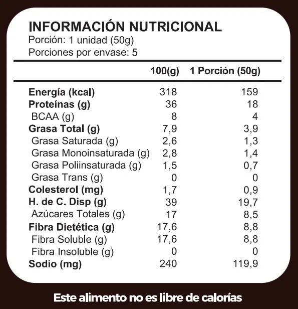 Proteína aislada de suero de leche, dátil, fibra de achicoria, crispy proteína de soya (aislado de proteína de soya, cacao, almidón tapioca) mantequilla de almendra, concentrado de coco (coco, polidextrosa), lecitina de soya, saborizante idéntico al natural. Contiene leche y soya.